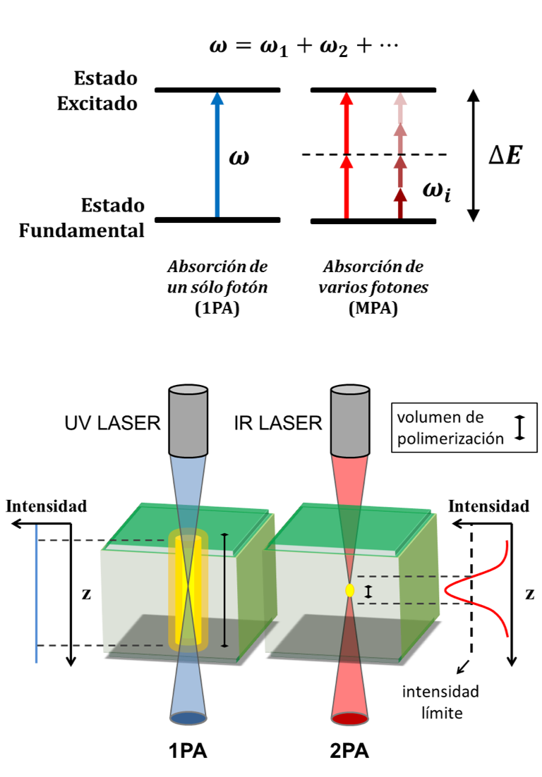 La generación de pulsos láser ultracortos, el evento artificial más efímero creado por el hombre, ha permitido el descubrimiento de nuevos fenómenos en el campo de la interacción radiación-materia. Entre ellos destaca la absorción de dos o más fotones en la llamada la polimerización de dos fotones (two-photon polymerization, 2PP de sus siglas en inglés). Usando esta técnica de escritura láser directa se pueden crear estructuras 3D de libre diseño a una escala microscópica y en diferentes materiales, con una resolución por debajo del límite impuesto por la difracción de la luz. La aplicación de las estructuras escritas vía 2PP van desde andamios en ingeniería tisular hasta estructuras y dispositivos fotónicos como microlentes, guías de onda en 3D y cristales fotónicos.
